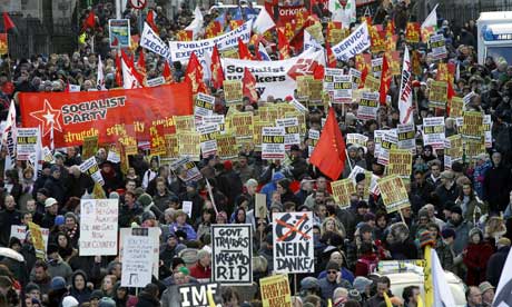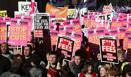 Similarly, if we read anything on the BNP or the EDL, they’re inevitably termed “far right”. Even when this isn’t strictly correct. The Herald is currently running a story on the demonstrations against University fee rises in the UK. These demonstrations are without a skerrick of doubt organised and led by the far left. (see banners and headers on signs in photos) Have a look at the Herald article here, and see if you can find the term “far left” used once.