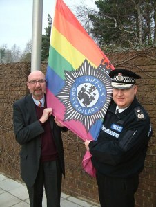 Police chiefs have come under fire today for flying the rainbow flag for lesbians, gays and bisexuals outside its police stations – when they are forbidden to display the Union Jack. The multi-coloured ‘Freedom’ flag adopted by the gay pride movement in the 1970’s is now flying at Suffolk Police’s Ipswich HQ and its stations at Bury St Edmunds and Lowestoft. The flags – which include the force’s badge – are to mark lesbian, gay, bisexual and transgender history month.
