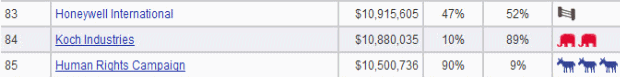 The real issue though is that on a scale that measures how much money is given to political parties, the Koch Bros are way down near the bottom of the top 100.