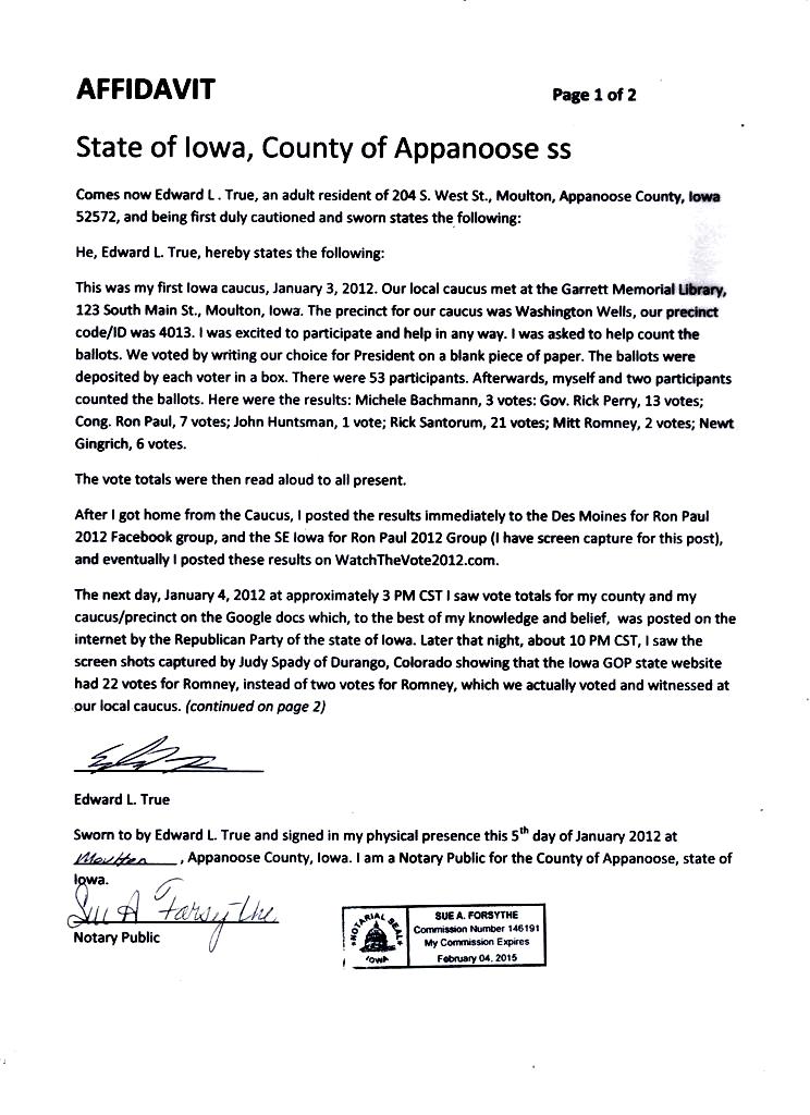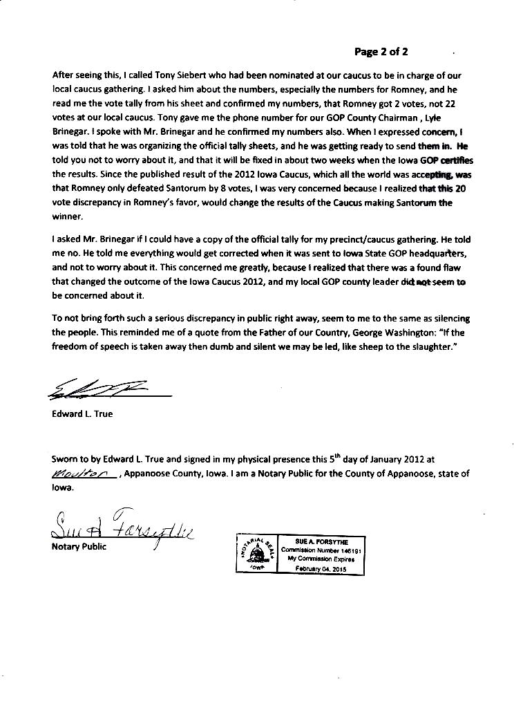 A spokeswoman with the Iowa Republican Party said True is not a precinct captain and he’s not a county chairperson so he has no business talking about election results. Notice there’s no challenge to True’s assertions about the actual numbers in that response.