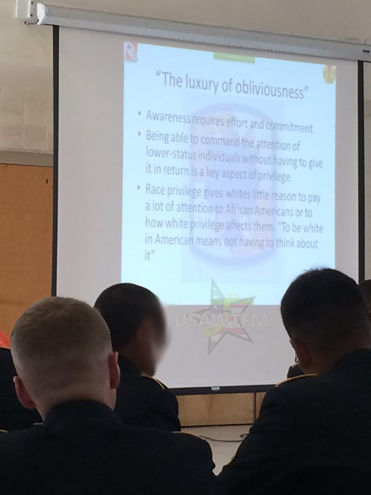 In yet another stark example of the mission by Progressives to infiltrate and weaken the US armed forces, soldiers at Fort Gordon in Georgia were instructed on “white privilege” during a “diversity training briefing”. (As if the latter Marxist BS isn’t enough on its own).